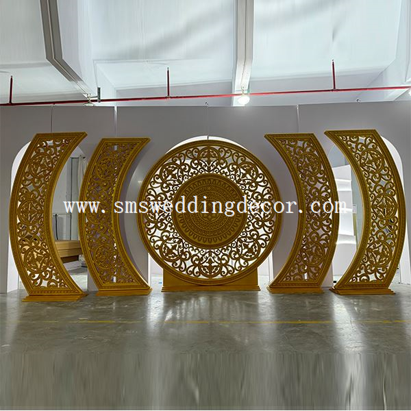 Jos haluat klassiset intialaistyyliset häät, voit valita tämänkultaiset häät taustakoristamaan näyttämöäsi. Se on ammattitaitoisten työntekijöidemme suunnittelema ja valmistama. Koko, väri, kuvio jne. voidaan räätälöidä eri tarpeiden mukaan. Luotamme siihen, että tuotteemme voivat avata paikallisia markkinoita.